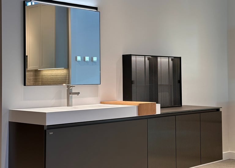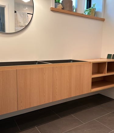 Contact us for custom cabinetry solutions for kitchens, bathrooms, living rooms, and more. Let's collaborate!